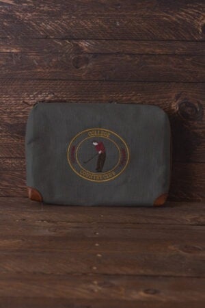 Pochette in Canvas Inglese e Pelle con Ricamo – Verde Militare e Cuoio