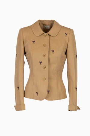 Giacca Sfiancata con Colletto Arrotondato e Ricami Sella – Sabbia