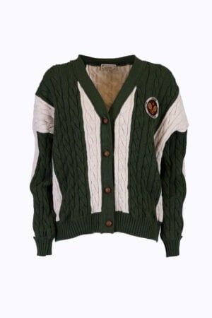PRONTA CONSEGNACardigan Trecciato a Righe con Patch Ricamato – Verde e Avorio