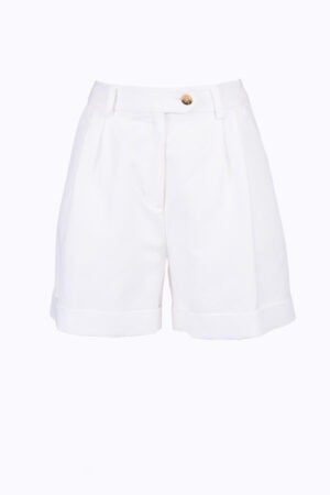 Pantalone Corto con Pieghe e Risvolto – Bianco