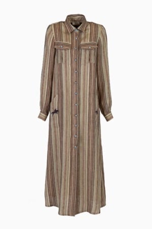 Abito Safari con Tasche Ricamate e Bottoni Turchesi – Rigato Safari