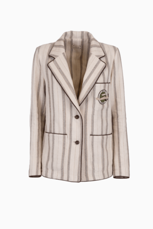 Safari Jacket with Brown Patches and Trim – Sand Stripe