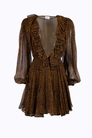 OTRAVEZ ARCHIVE PROMPT DELIVERYShort V-Neck Dress with Ruffles – Dark Spotted