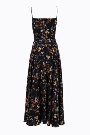 OTRAVEZ ARCHIVE PROMPT DELIVERYLong Dress with Scarf at the Waist – Black Background and Flowers