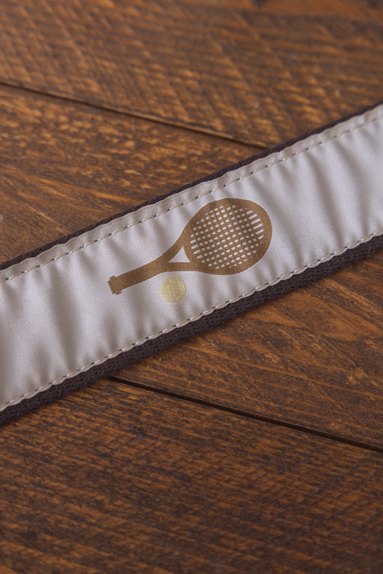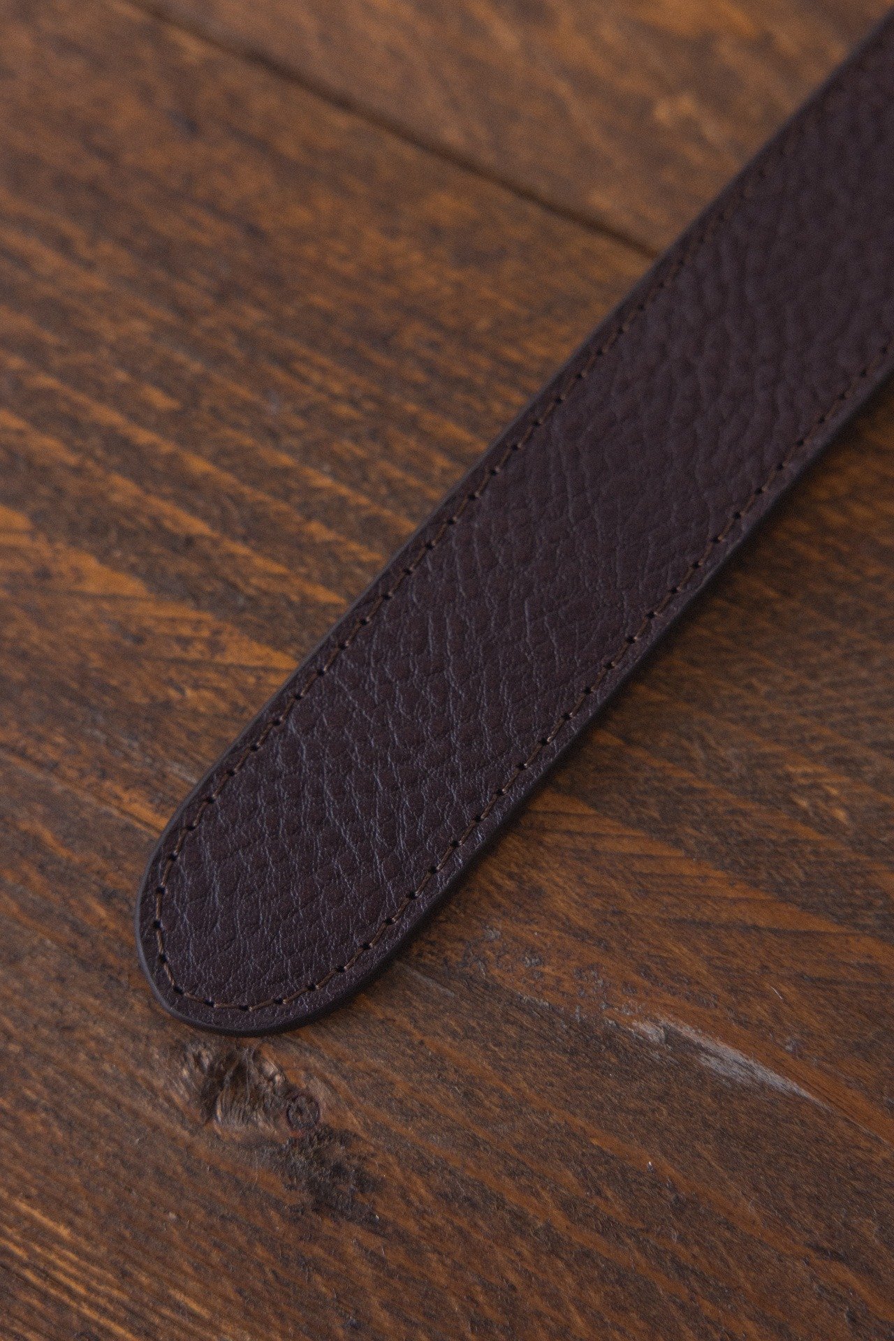 100% Polyester ribbon, high quality dark brown leather inserts Made in Italy.