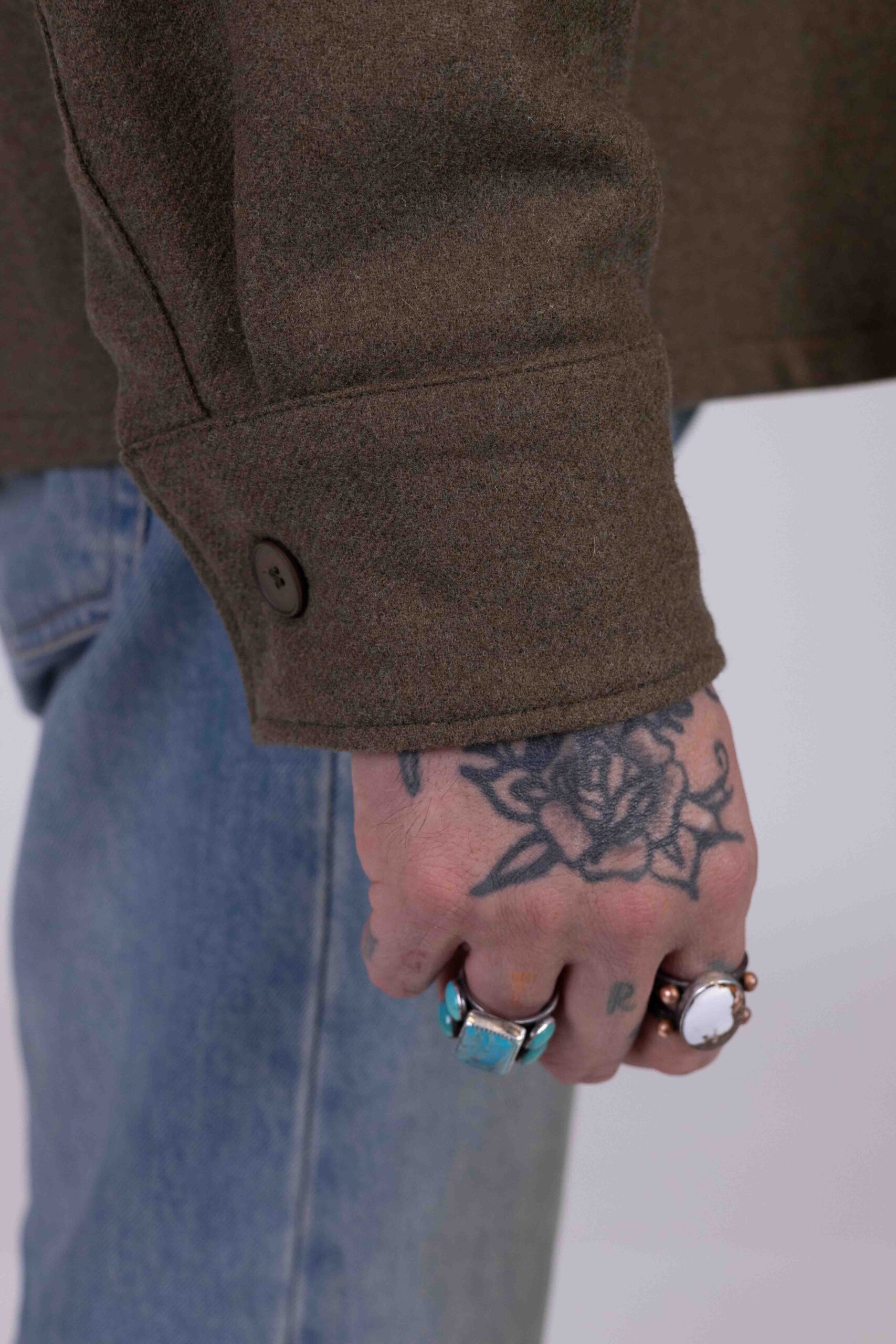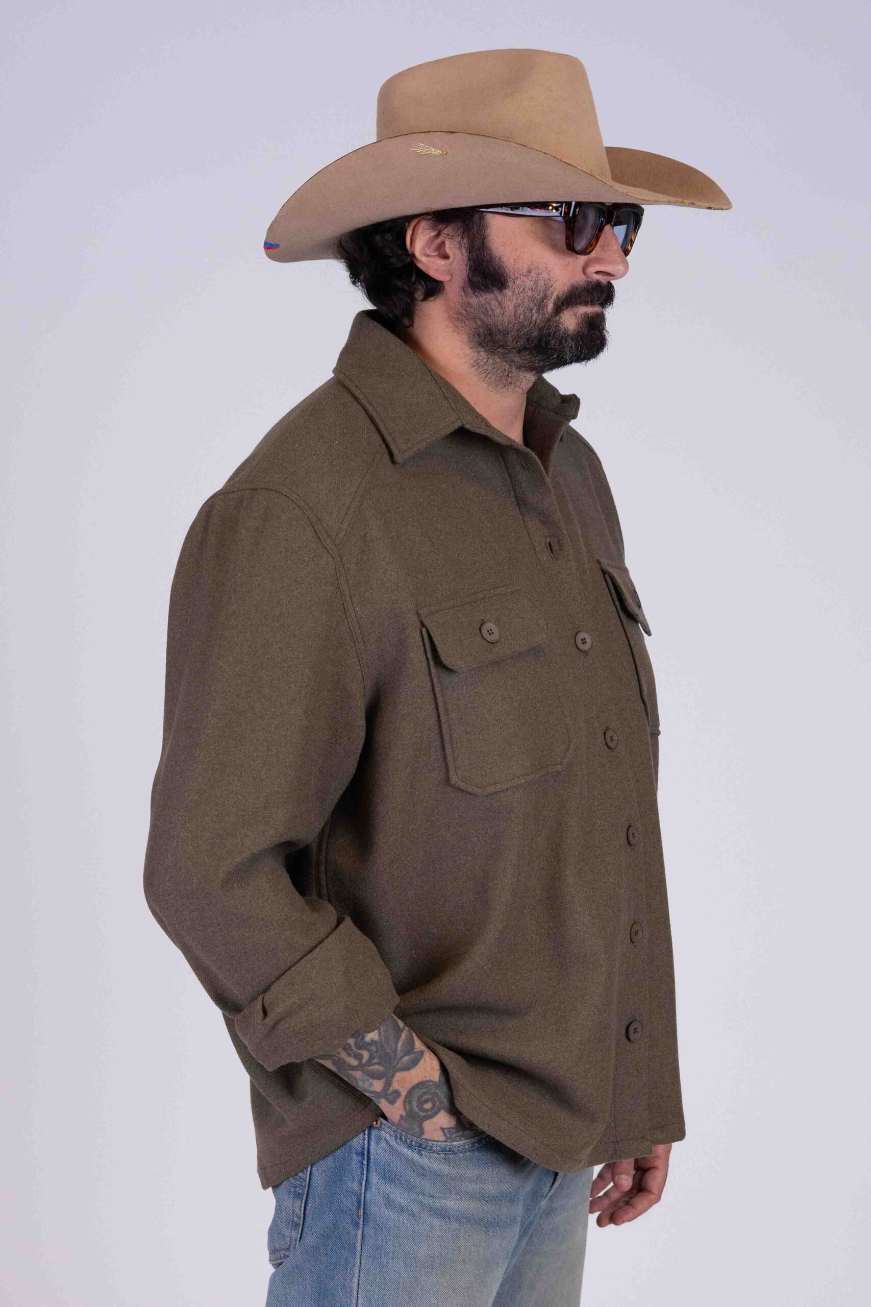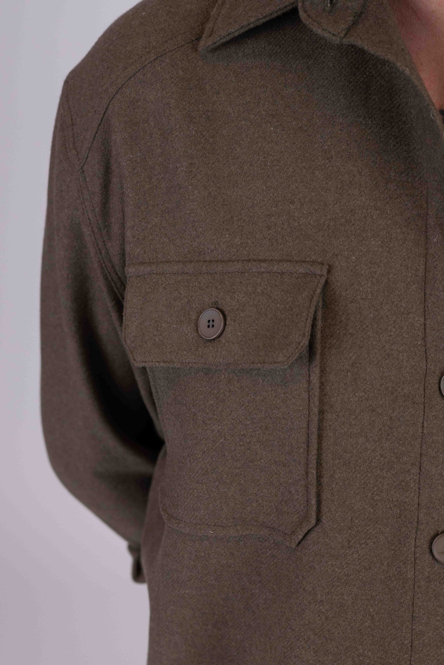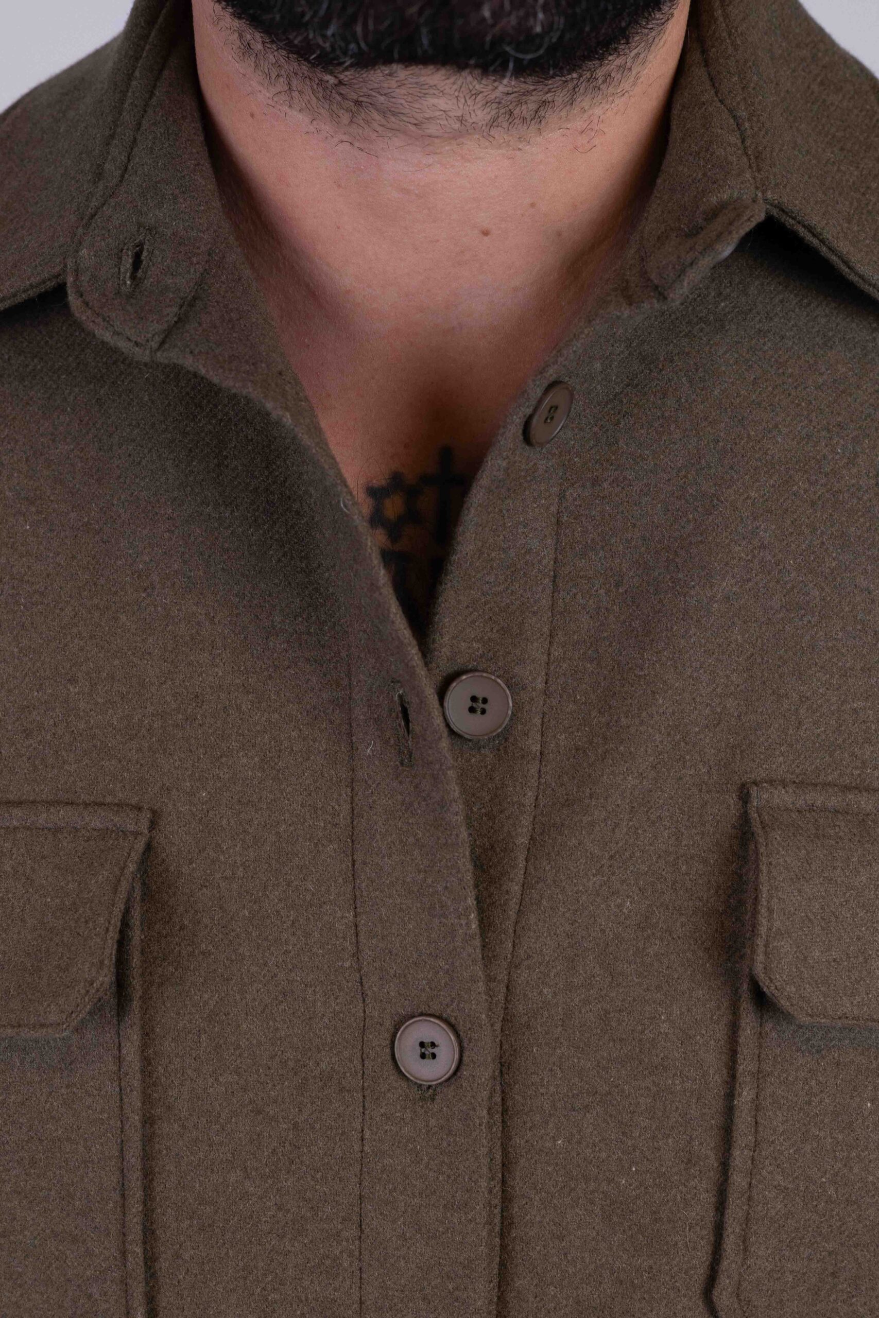 Simple and bold, this wool blend winter shirt is designed to face the cold season with style and character. The comfortable fit and the military green color lend a sober, contemporary elegance.