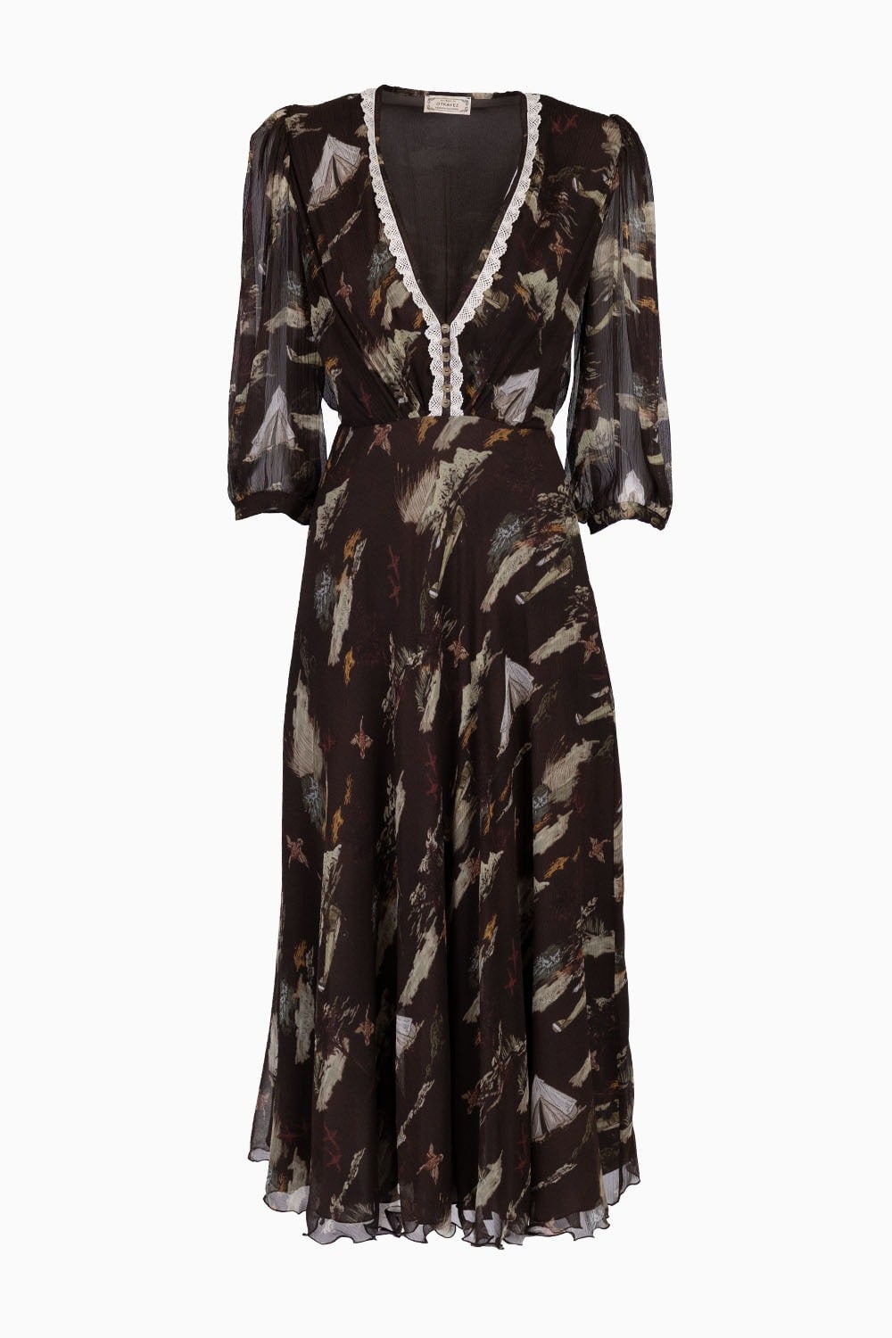 Midi Dress with Three-Quarter Sleeves and Japanese Lace – Safari
