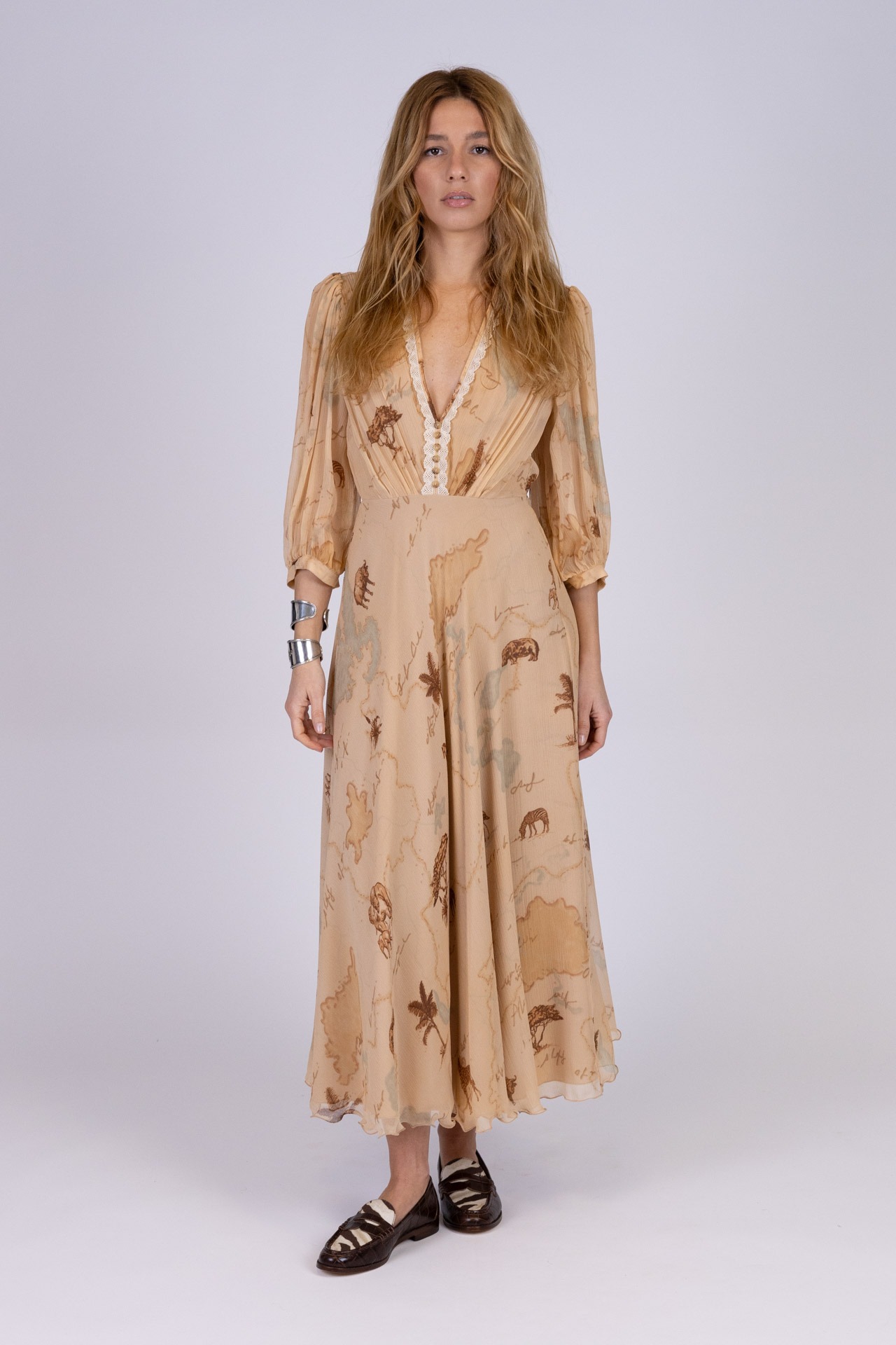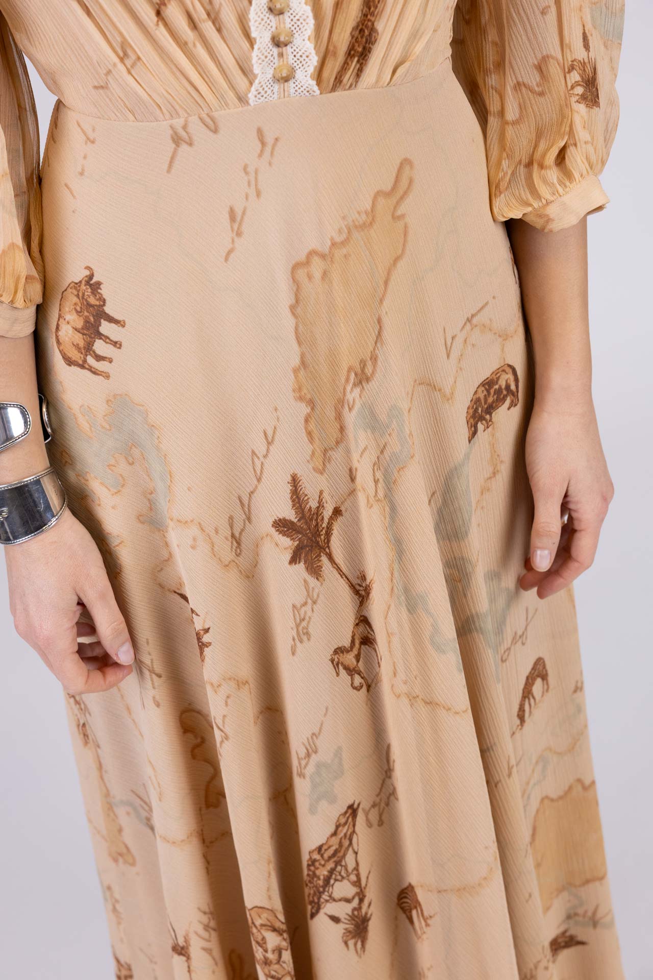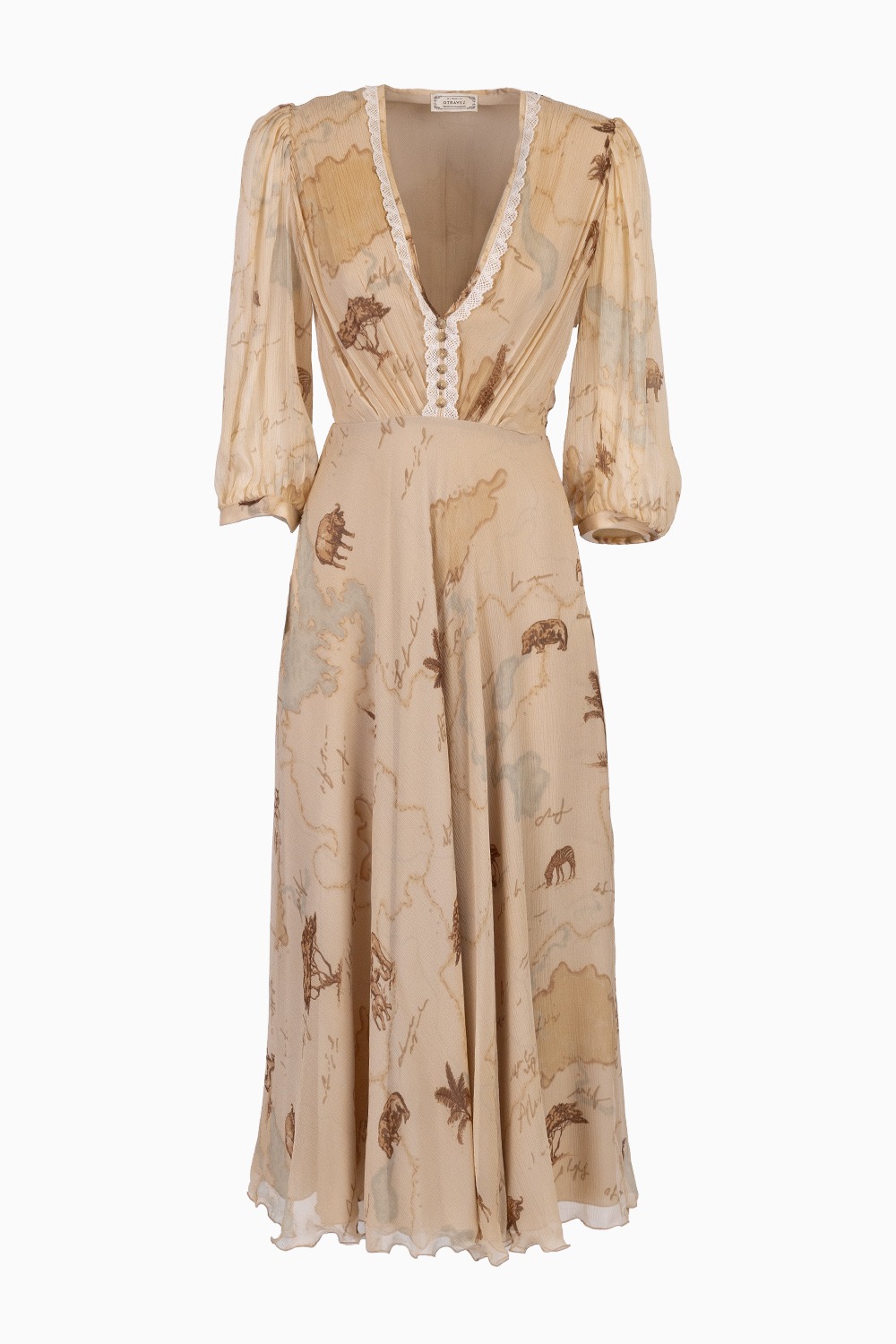 Midi Dress with Three-Quarter Sleeves and Japanese Lace – Safari Map