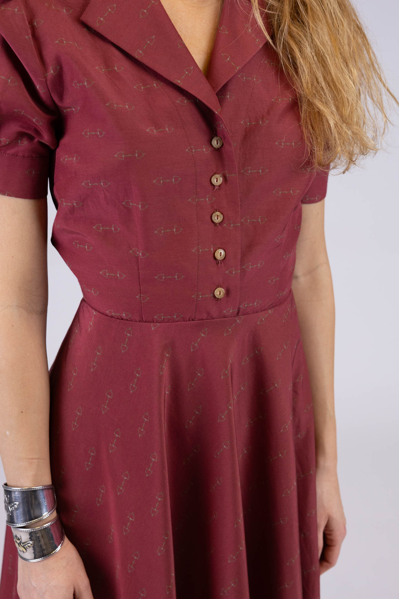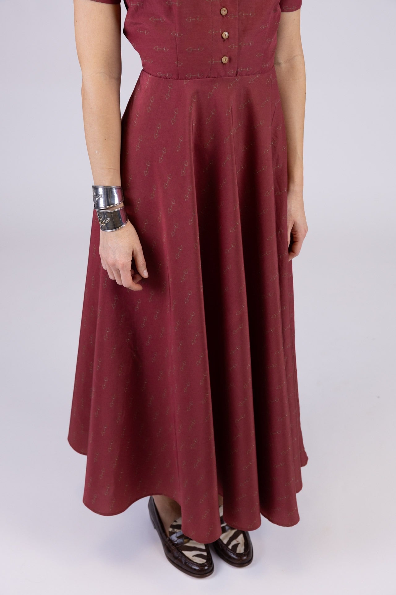 A dress that tells a story of elegance and character, where every detail is born from an authentic sartorial gesture. Crafted from cotton and silk, it stands out for its intense red hue and horse-bit print— a refined tribute to equestrian style reinterpreted with a contemporary spirit.