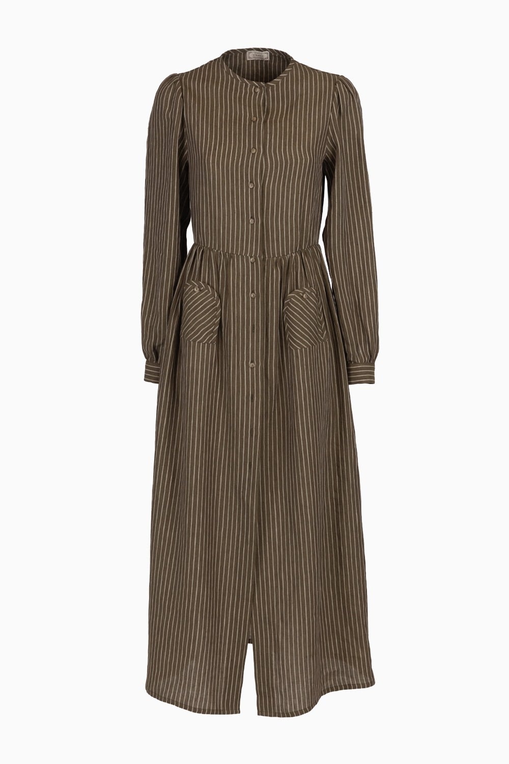 Be the first to review “Soft Shirt Dress with Equestrian Pocket – Olive Pinstripe”