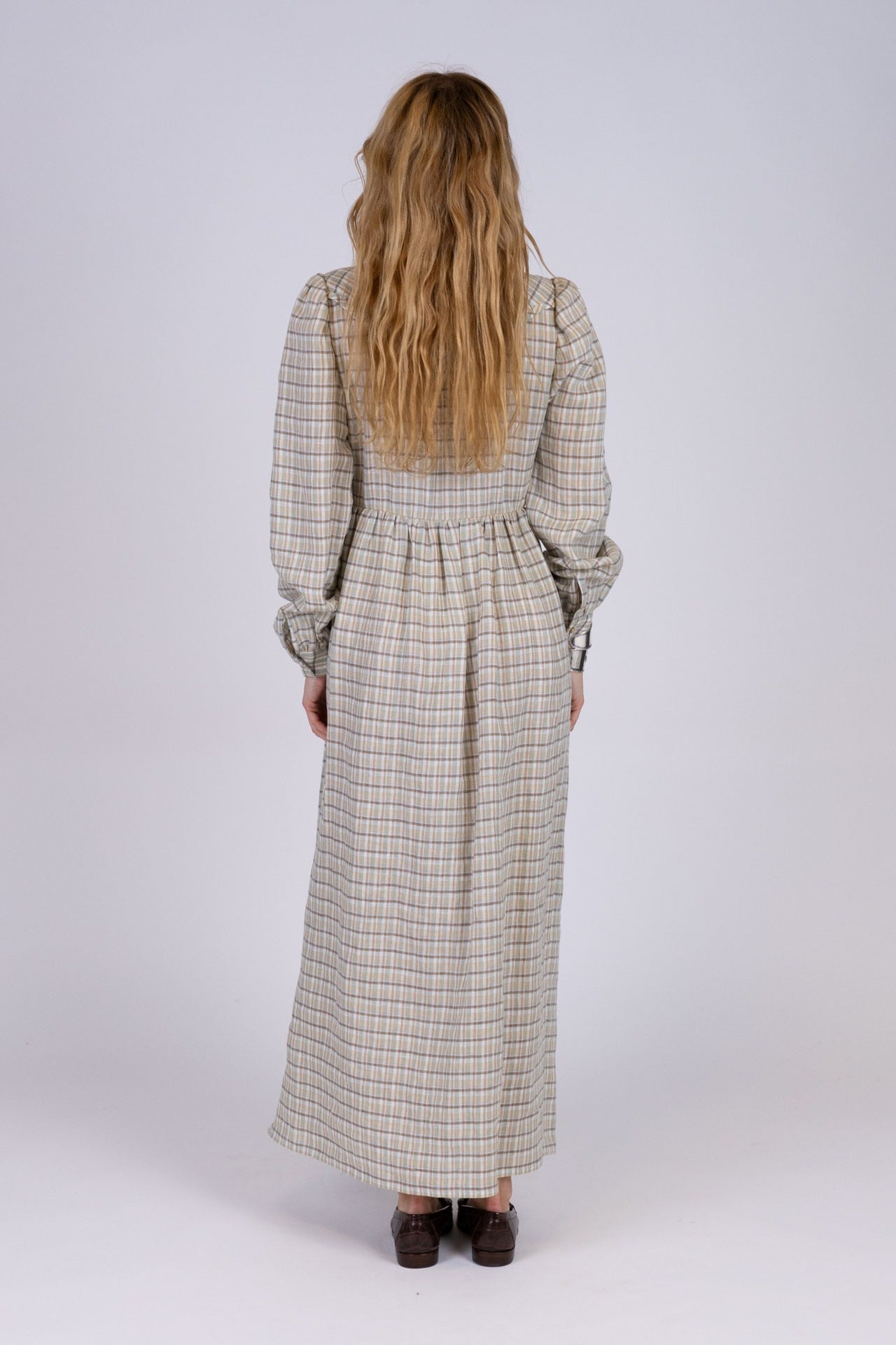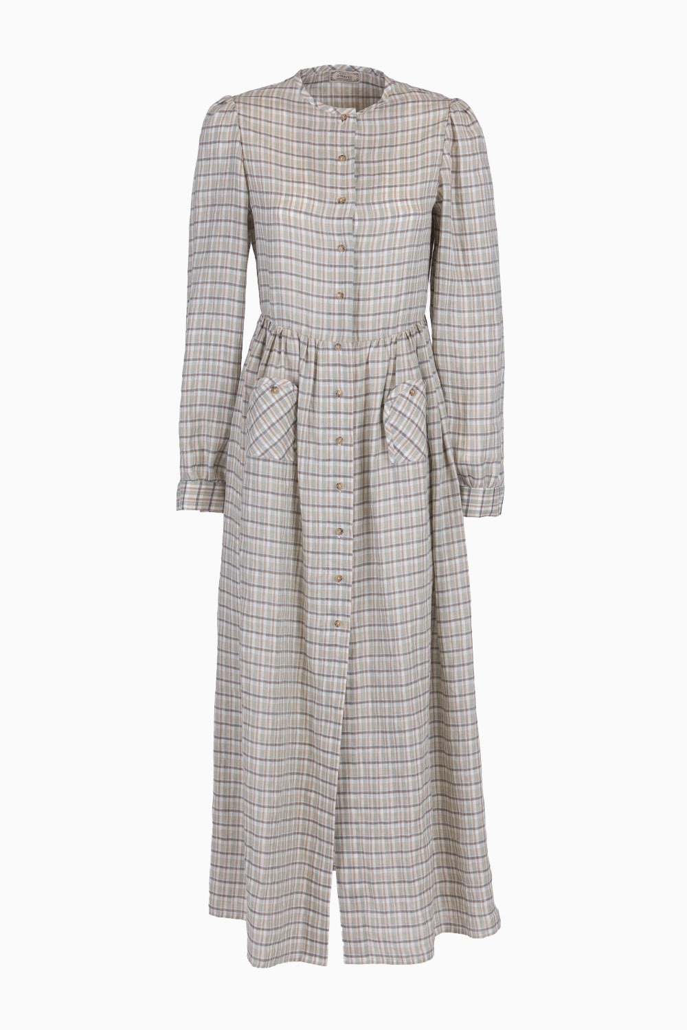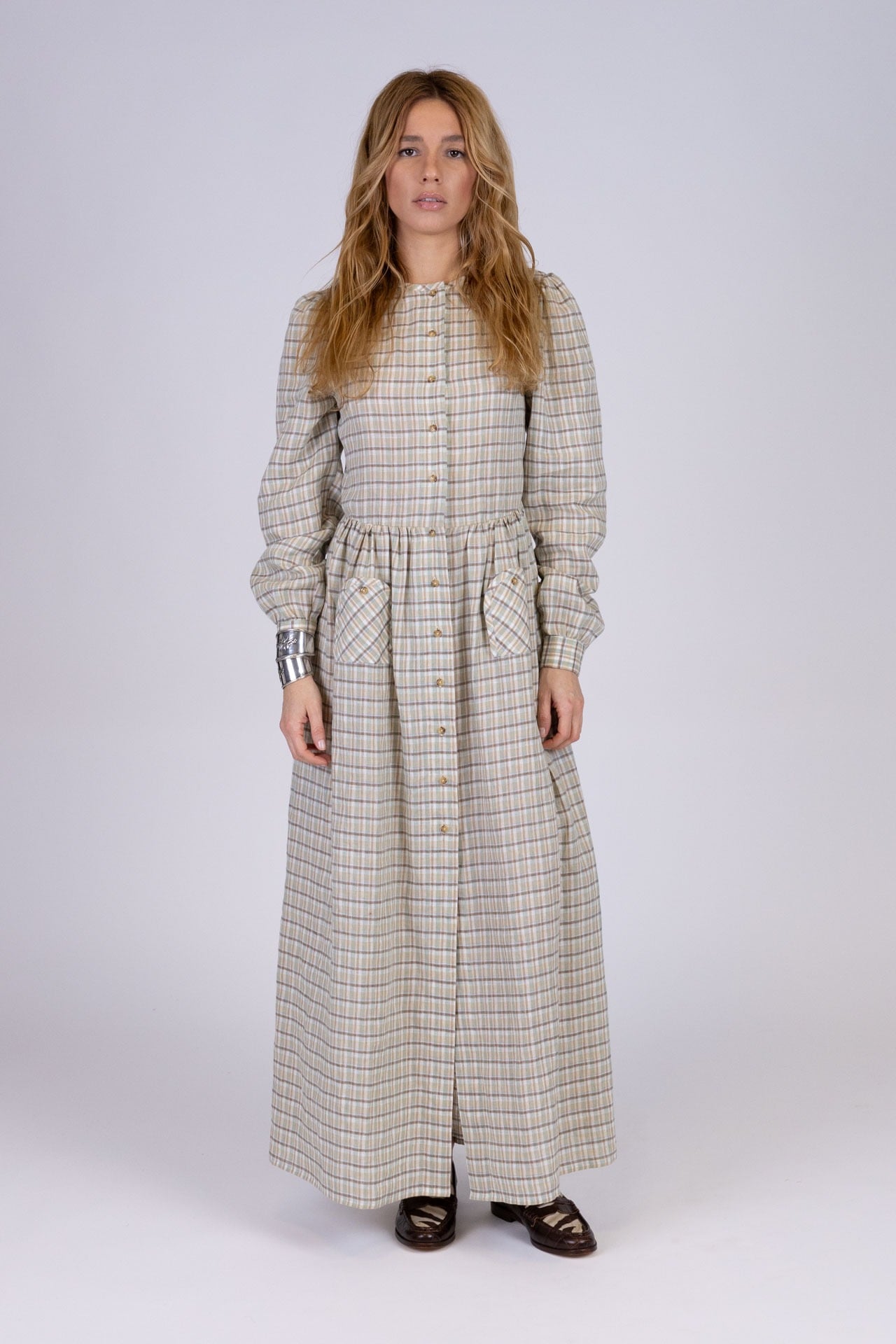 This long dress features a feminine and harmonious silhouette, crafted from 100% high-quality linen that provides structure and lightness, accompanying movement with natural elegance and a refreshing sensation on the skin. The bodice delicately hugs the torso, defining the waist before opening into a full, flowing skirt that flows effortlessly to a maxi length, creating a sleek and refined silhouette.