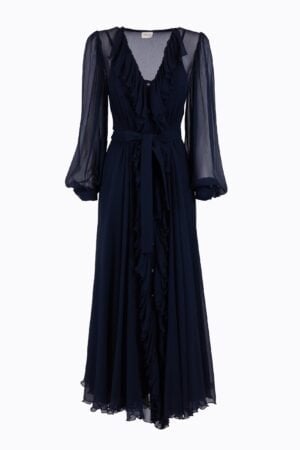Abito Bottoncini alla Caviglia con Volant – Blu Scuro