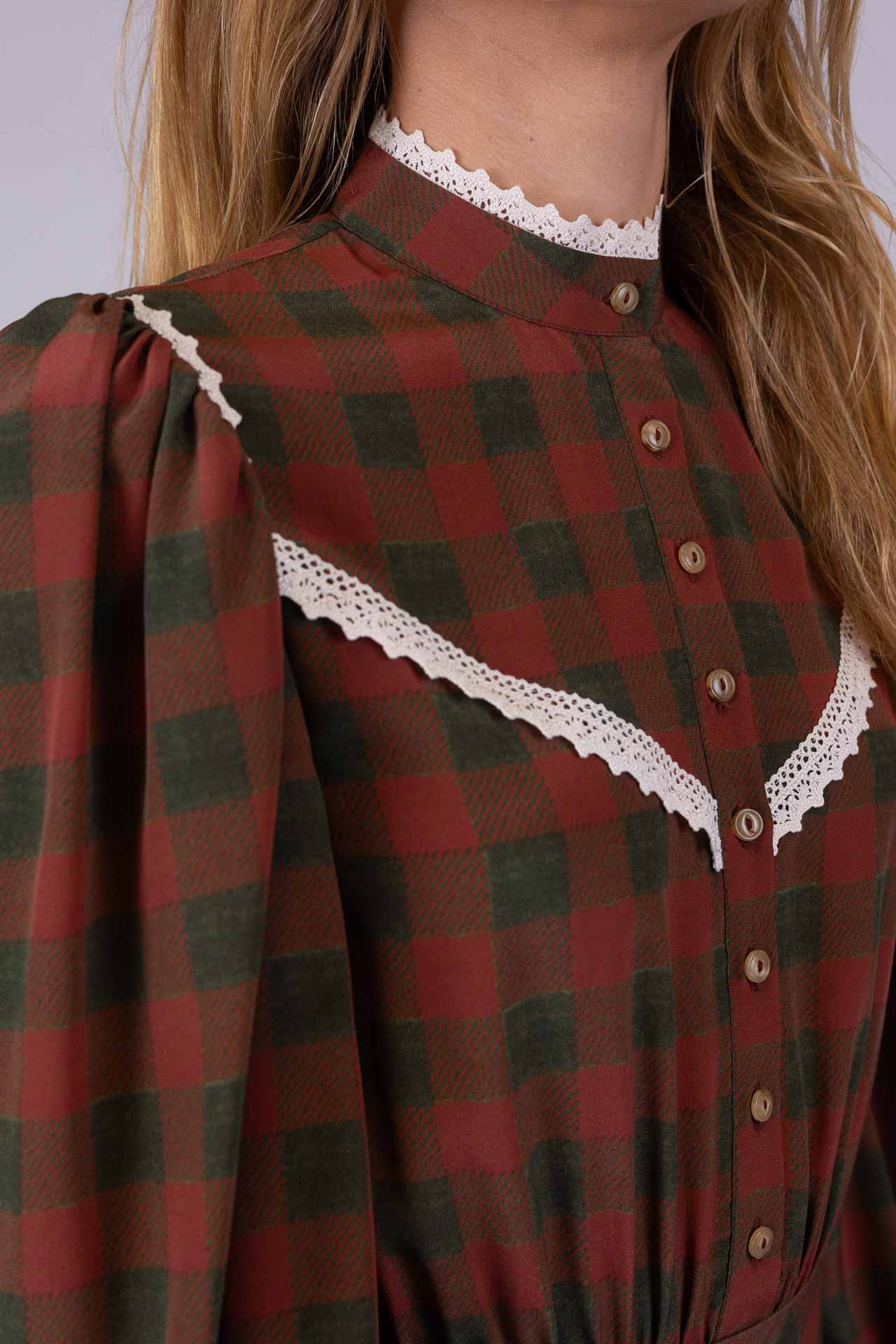 Capo Realizzato in 100% Crep de chine di seta. Pizzo in 100% cotone.