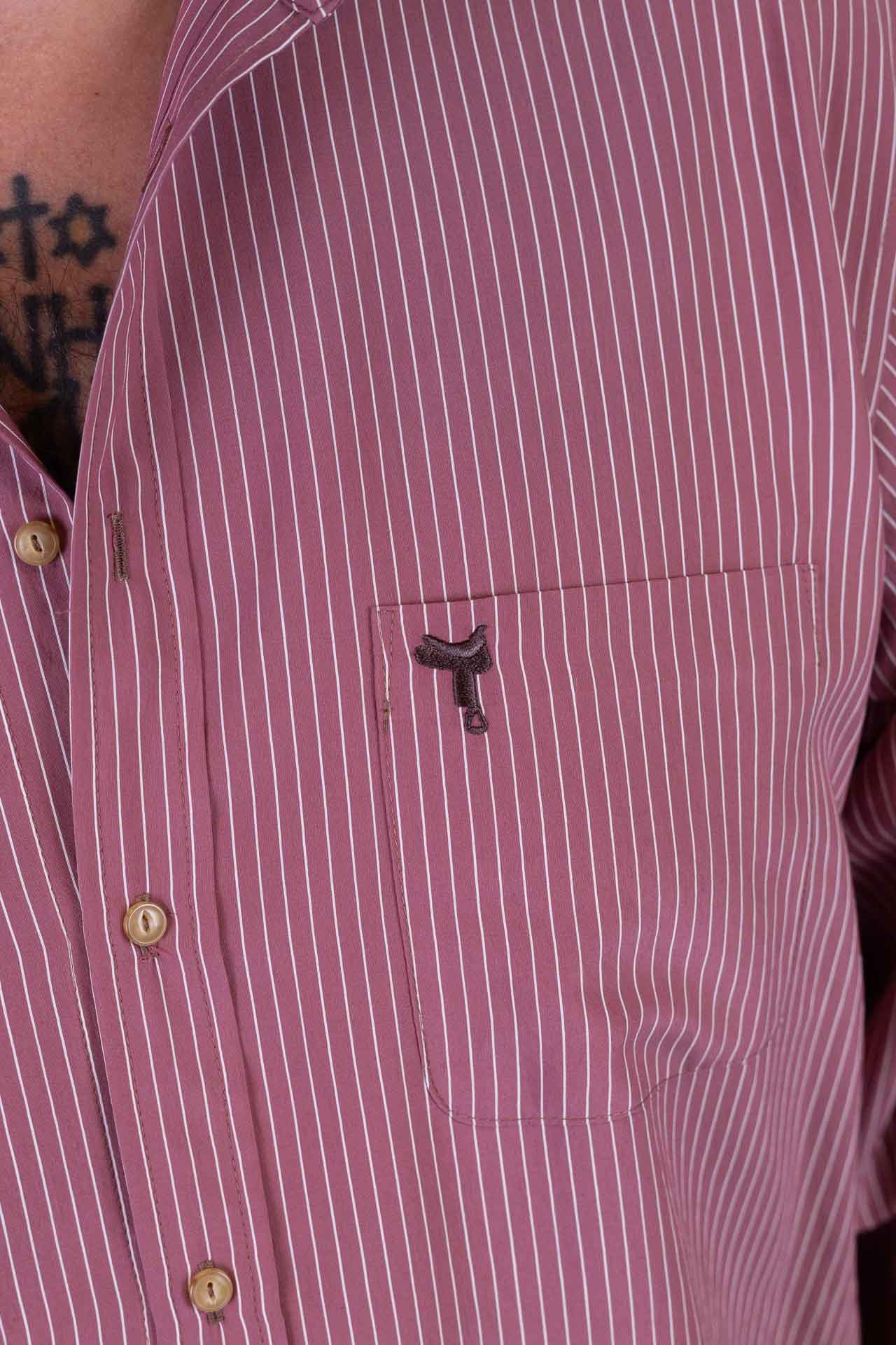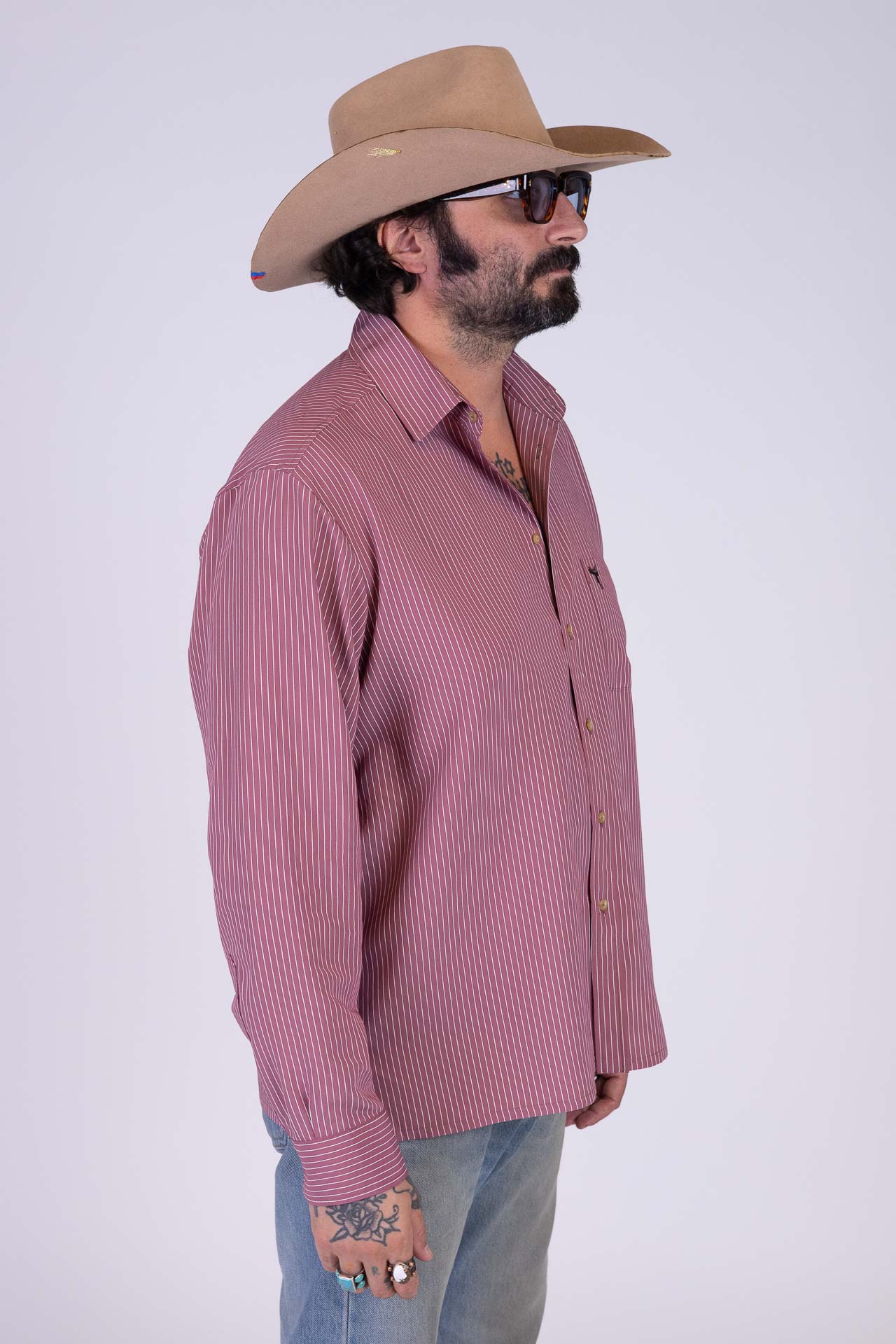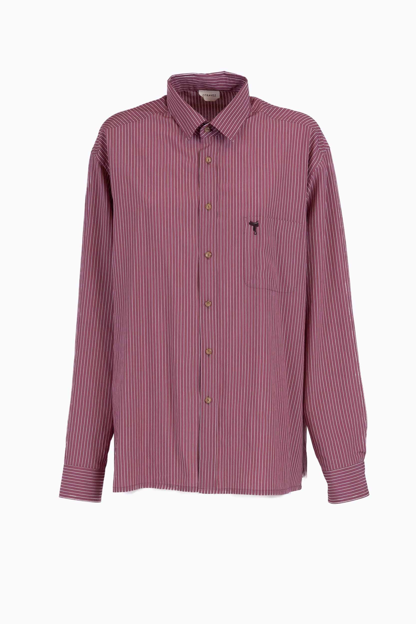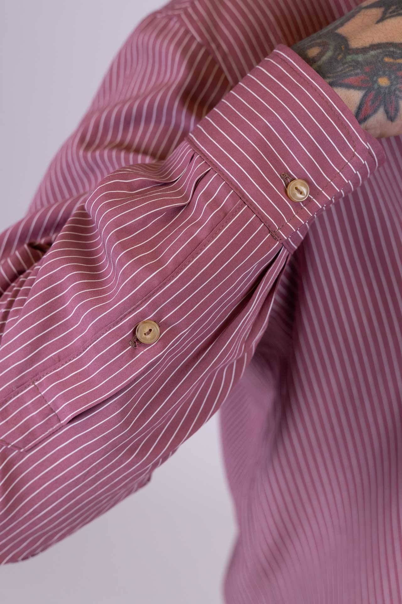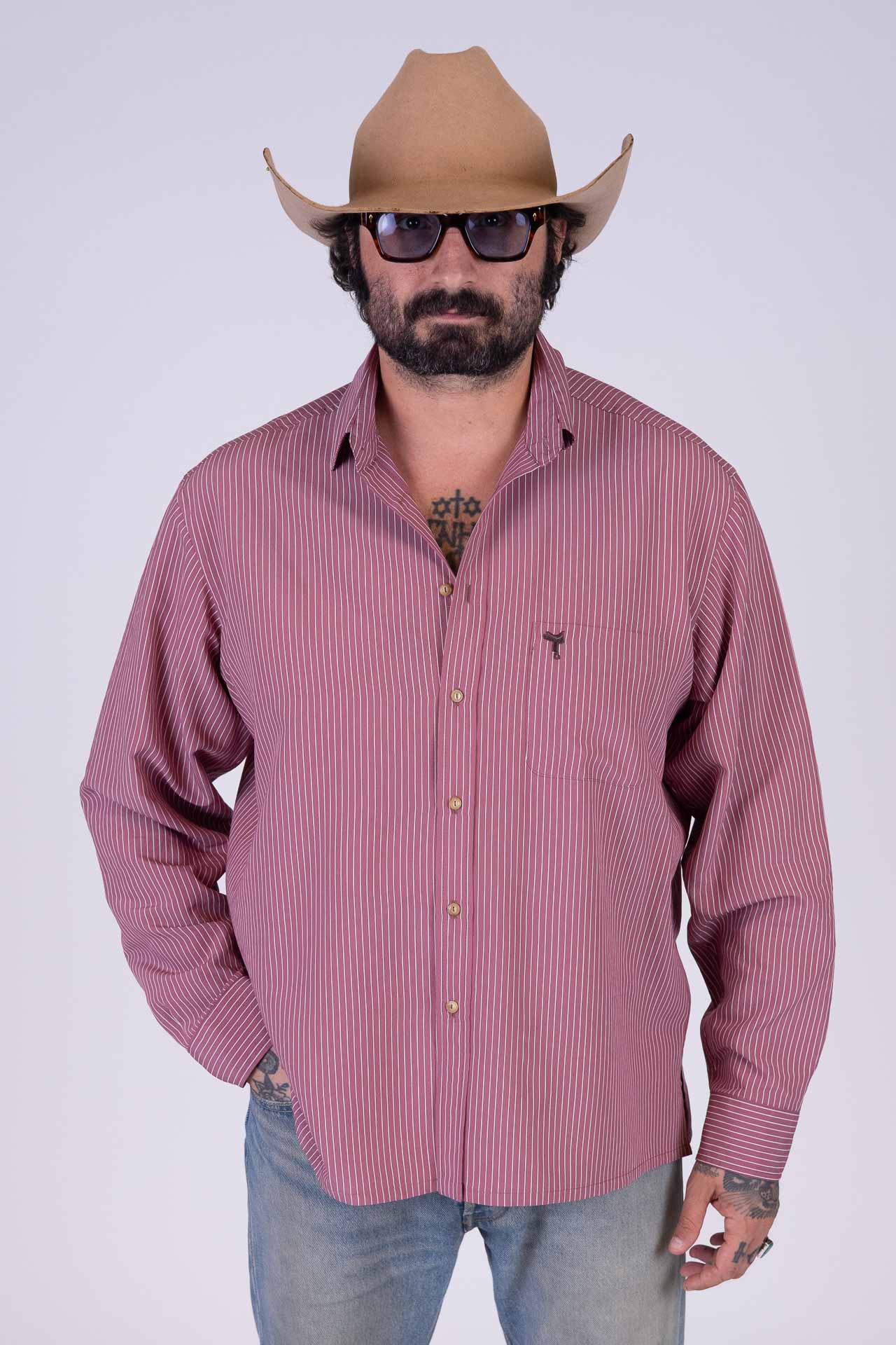 Questa camicia unisex, con abbottonatura a uomo e righe verticali, unisce eleganza e carattere in un unico design. Il taschino frontale sinistro, caratterizzato da un ricamo marrone di una sella di cavallo, raccontano una storia di passione fin dalle sue radici, mentre le linee verticali slanciano la figura. I polsini sono leggermente stondati e arricchiti da bottoncini in pasta naturale. Un capo di cui non potrai più fare a meno.