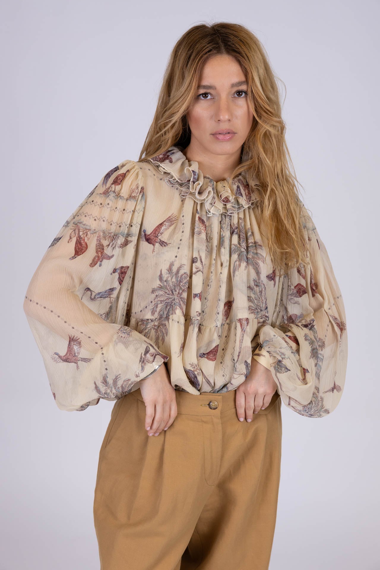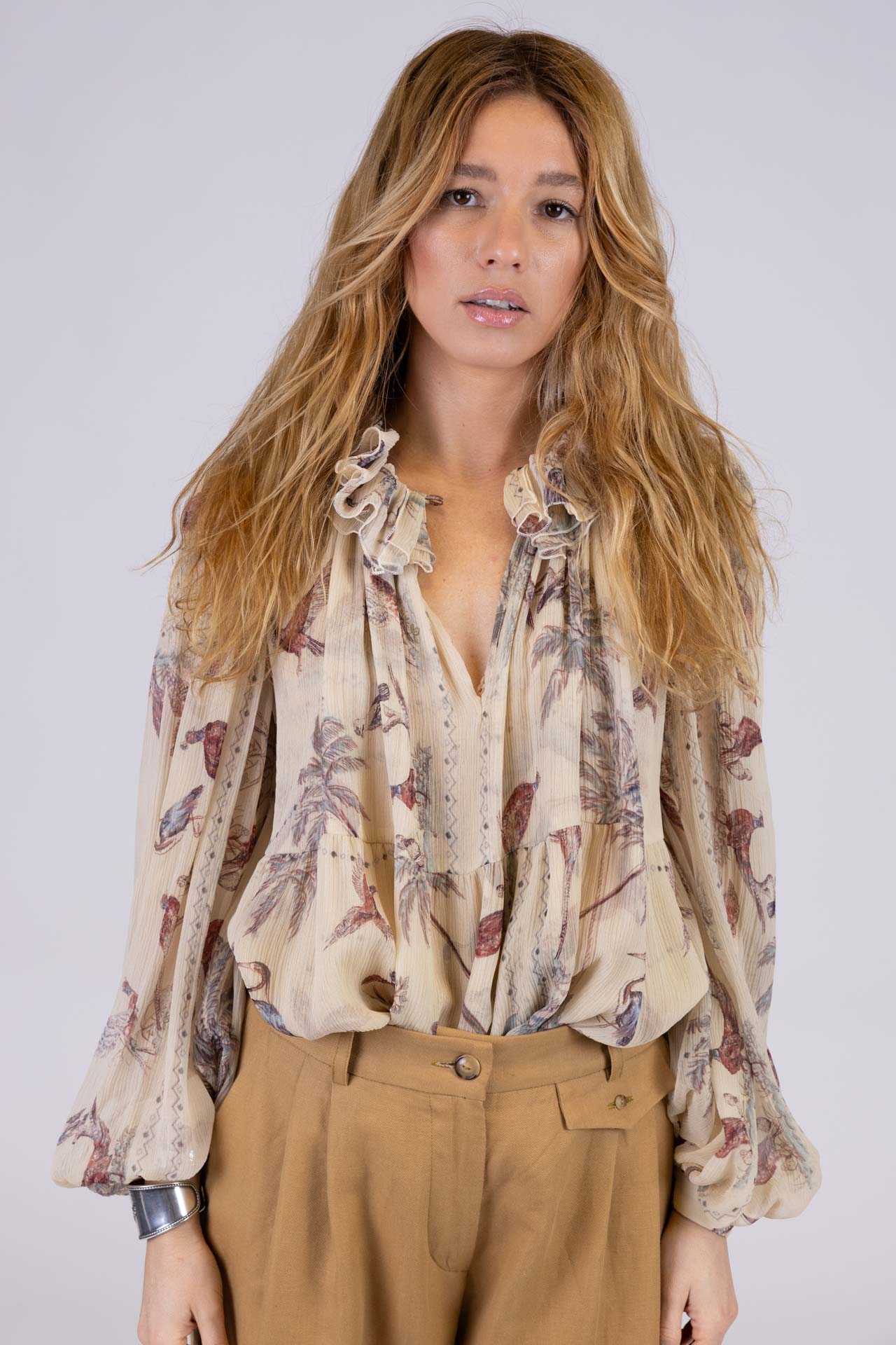 Camicia dal carattere romantico e sofisticato, costruita su volumi morbidi che avvolgono il corpo con leggerezza e naturale movimento.
