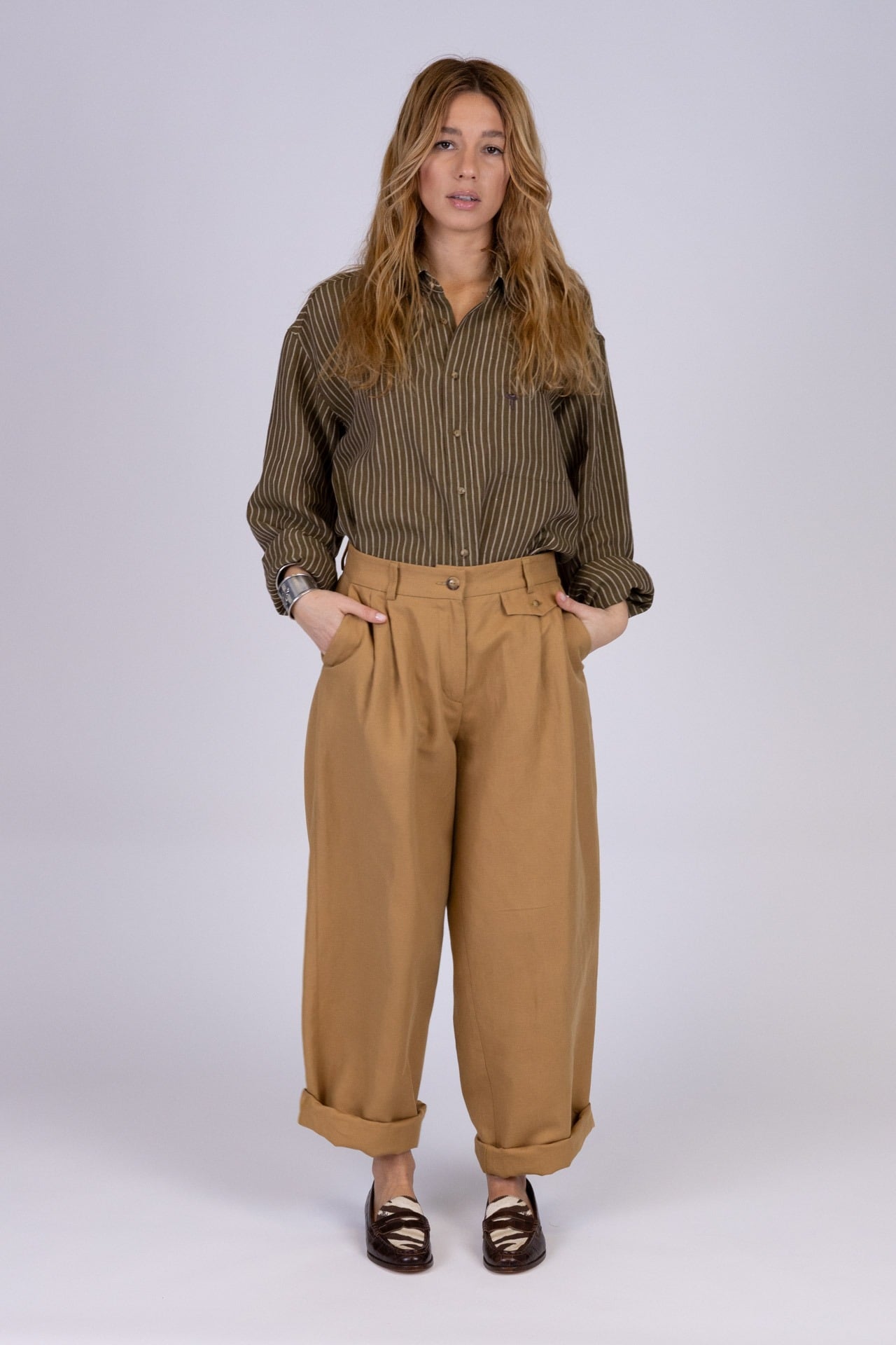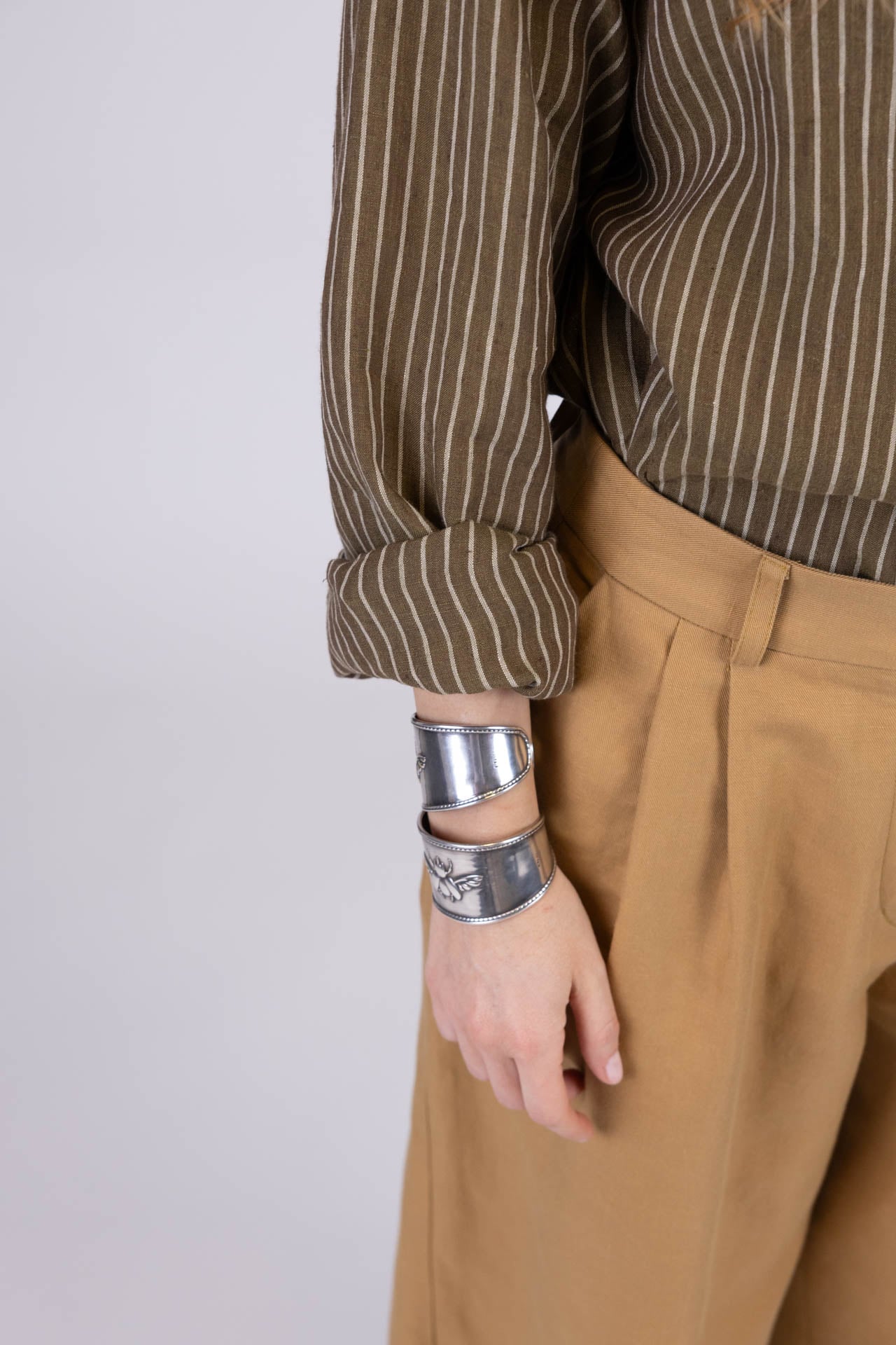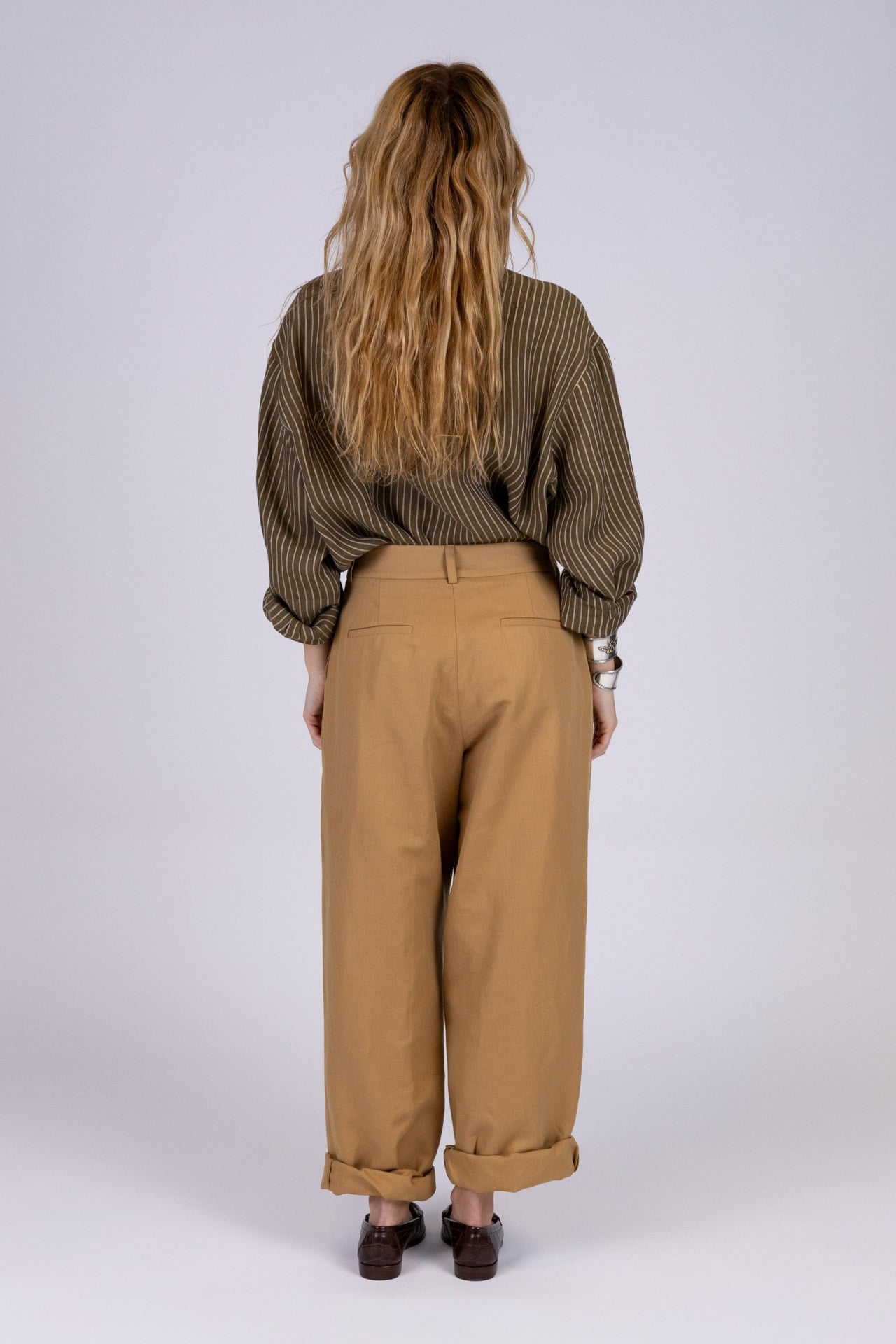 I polsini leggermente stondati, completati da bottoncini in pasta naturale, aggiungono un tocco di cura sartoriale che definisce la qualità del capo.