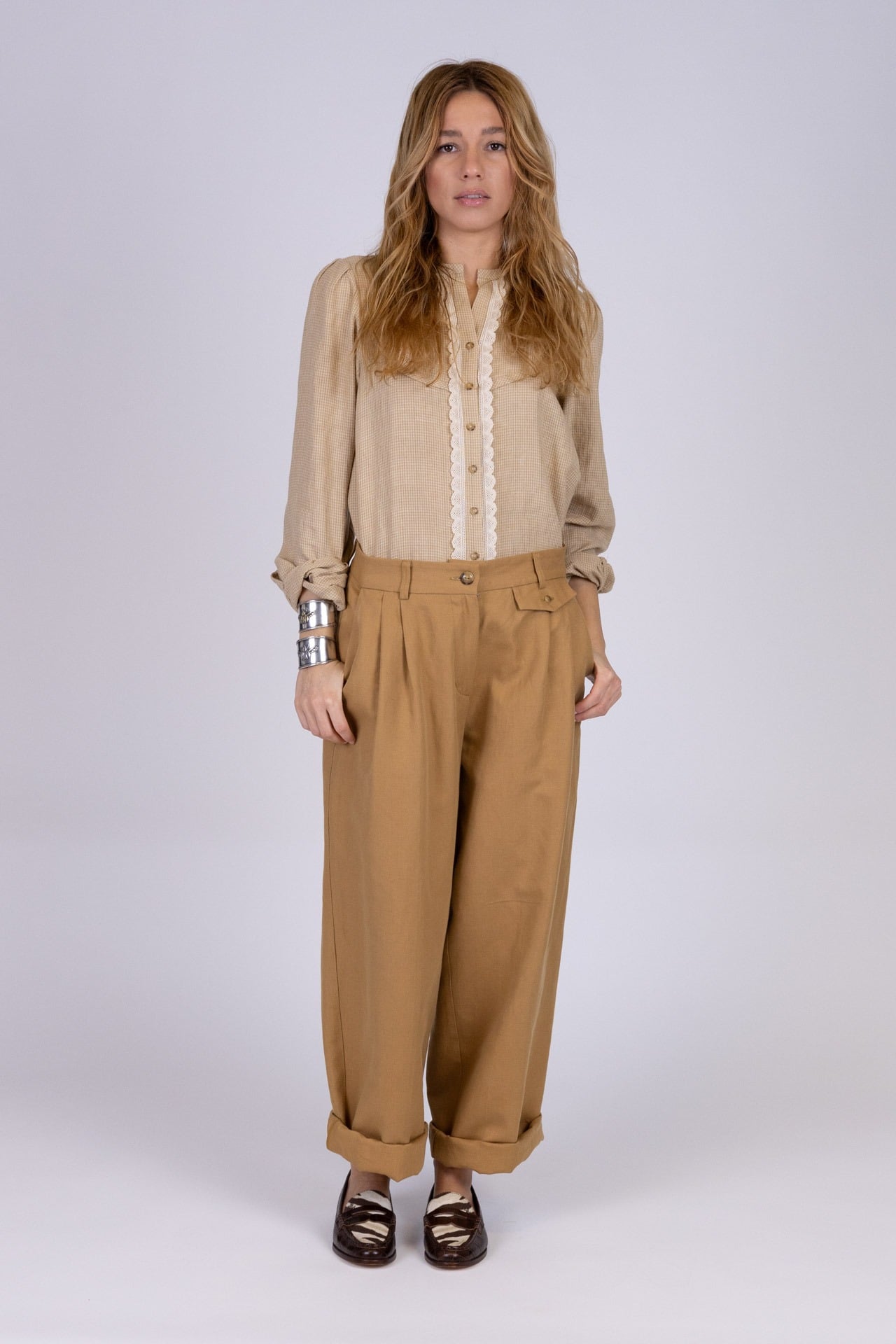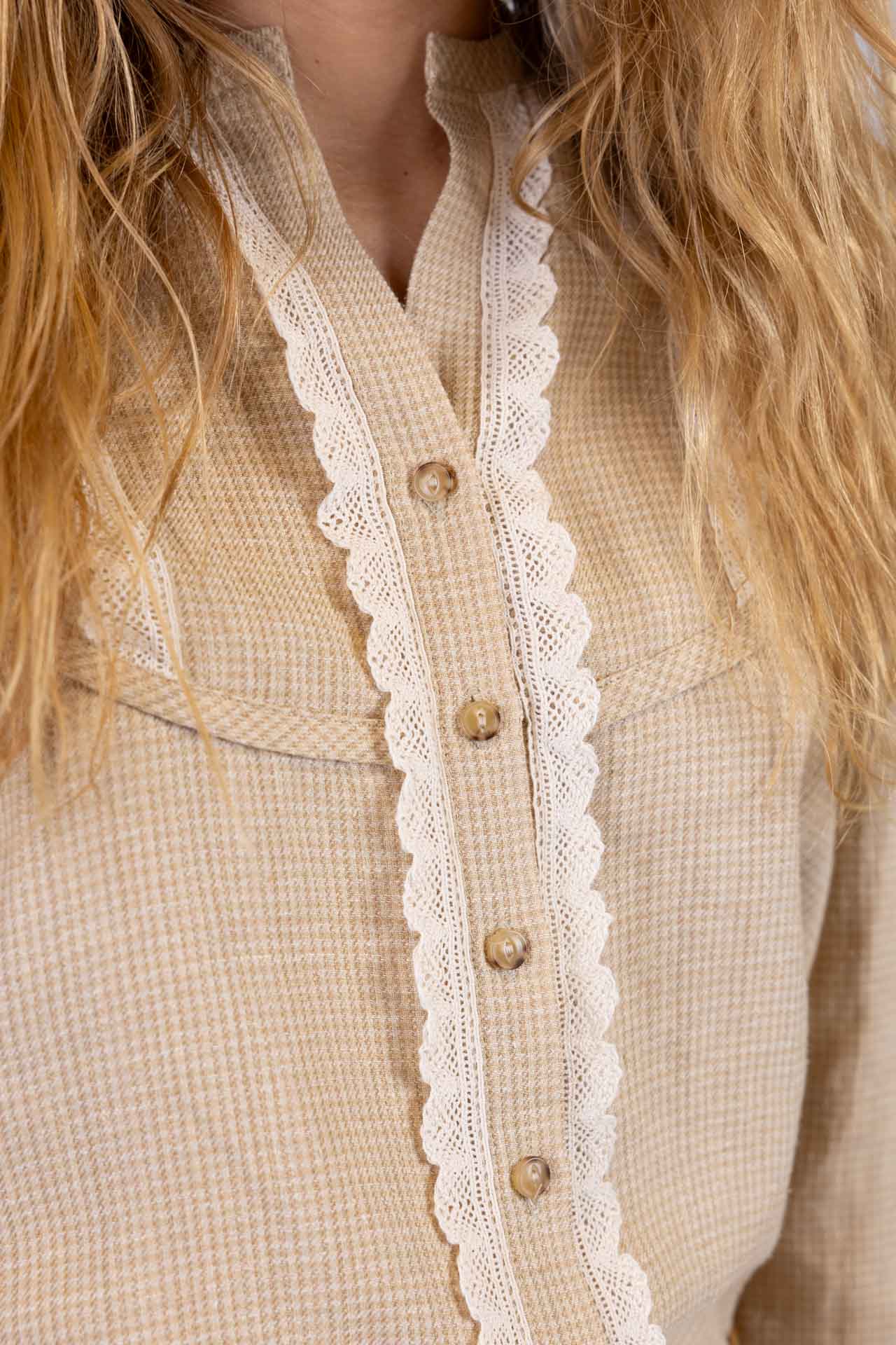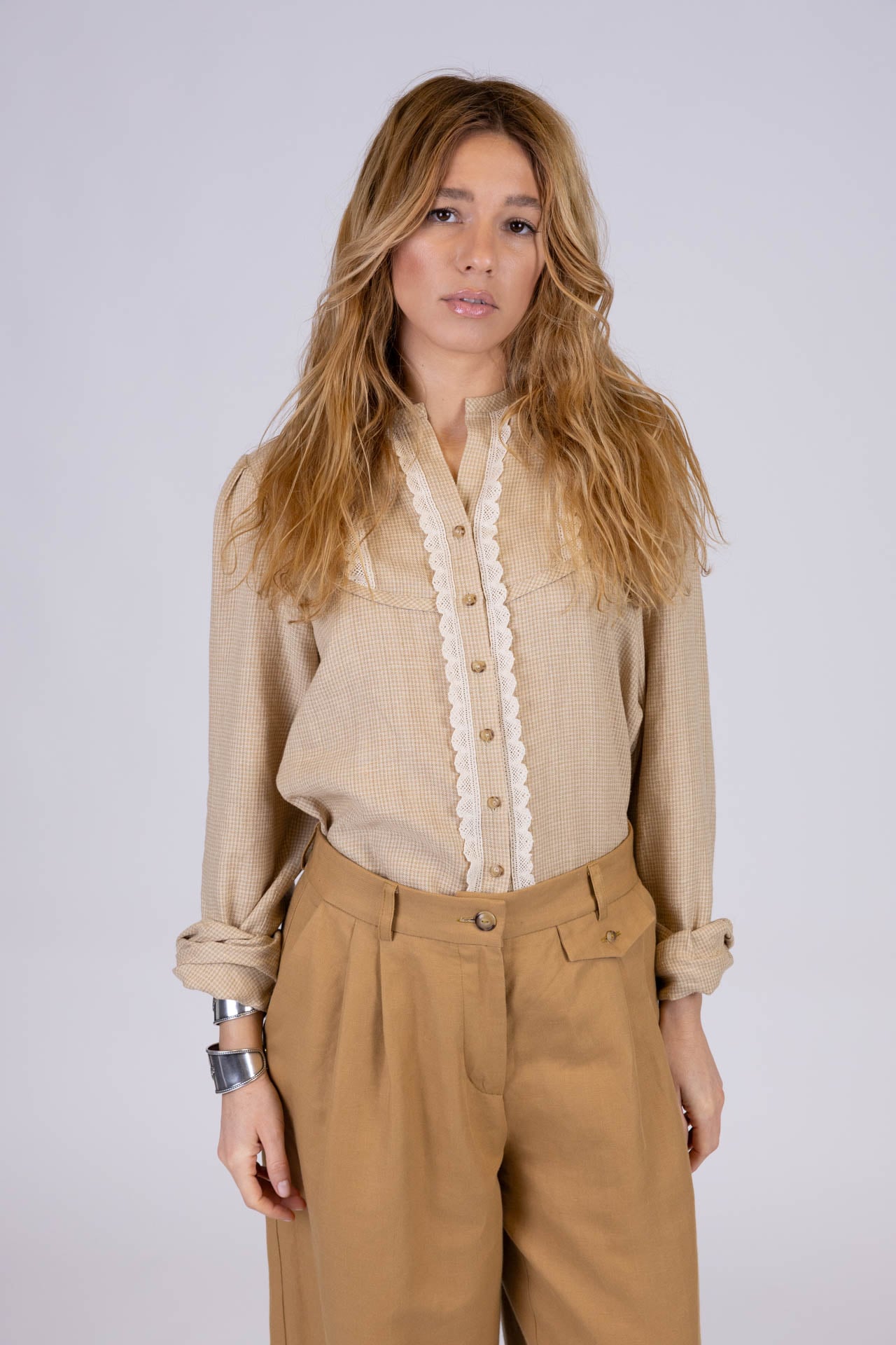 Blusa dal gusto romantico e ricercato, pensata per unire delicatezza e carattere in un equilibrio armonioso.
