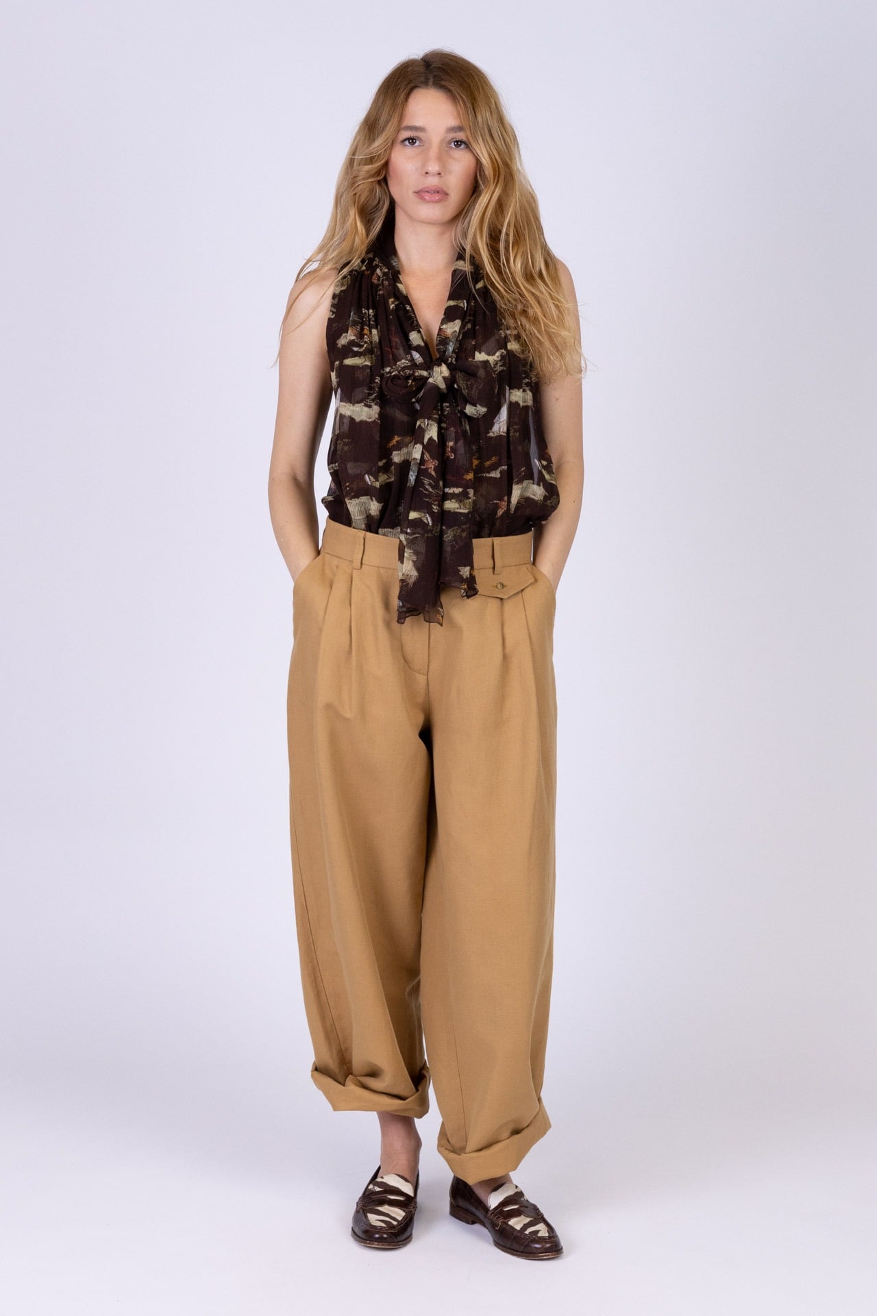 Camicia smanicata dal fascino leggero e sofisticato, pensata per avvolgere il corpo con naturalezza e valorizzare ogni movimento grazie alla fluidità del crepon di seta.