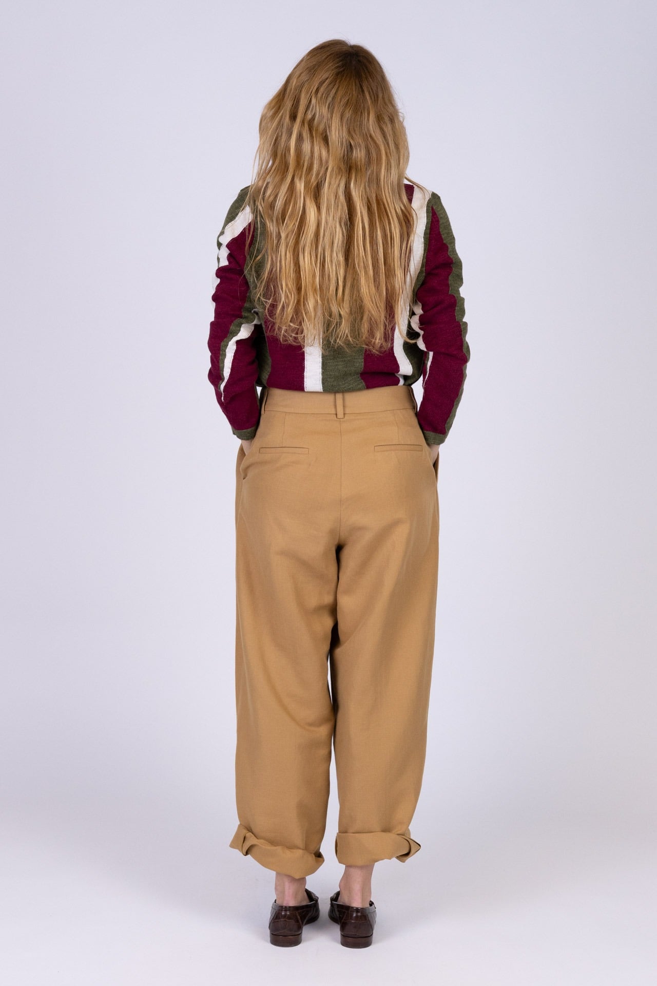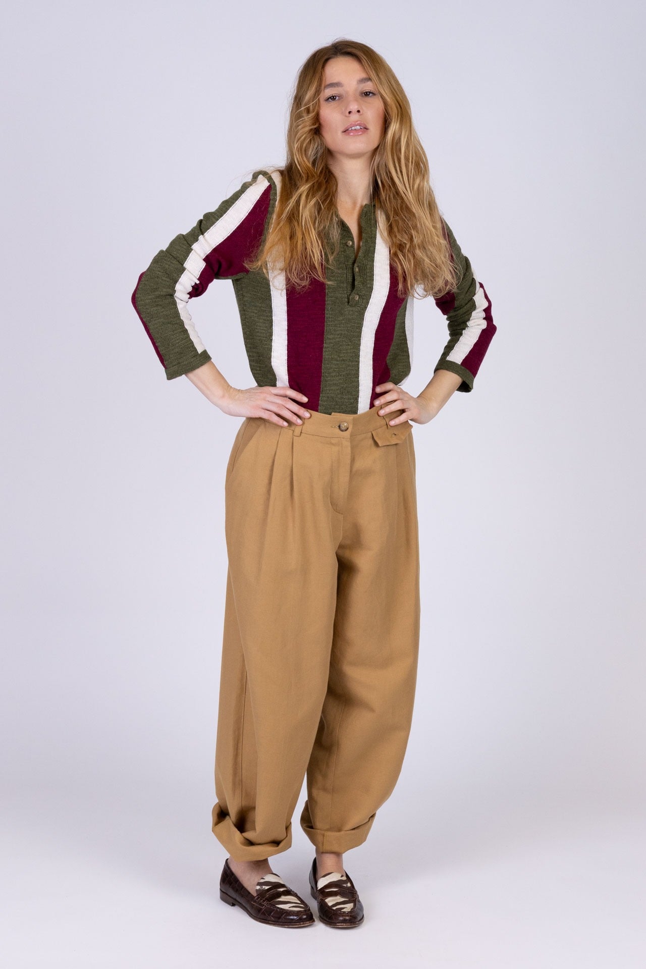 La modella indossa la taglia 38/40 ed è alta 1,70 m.